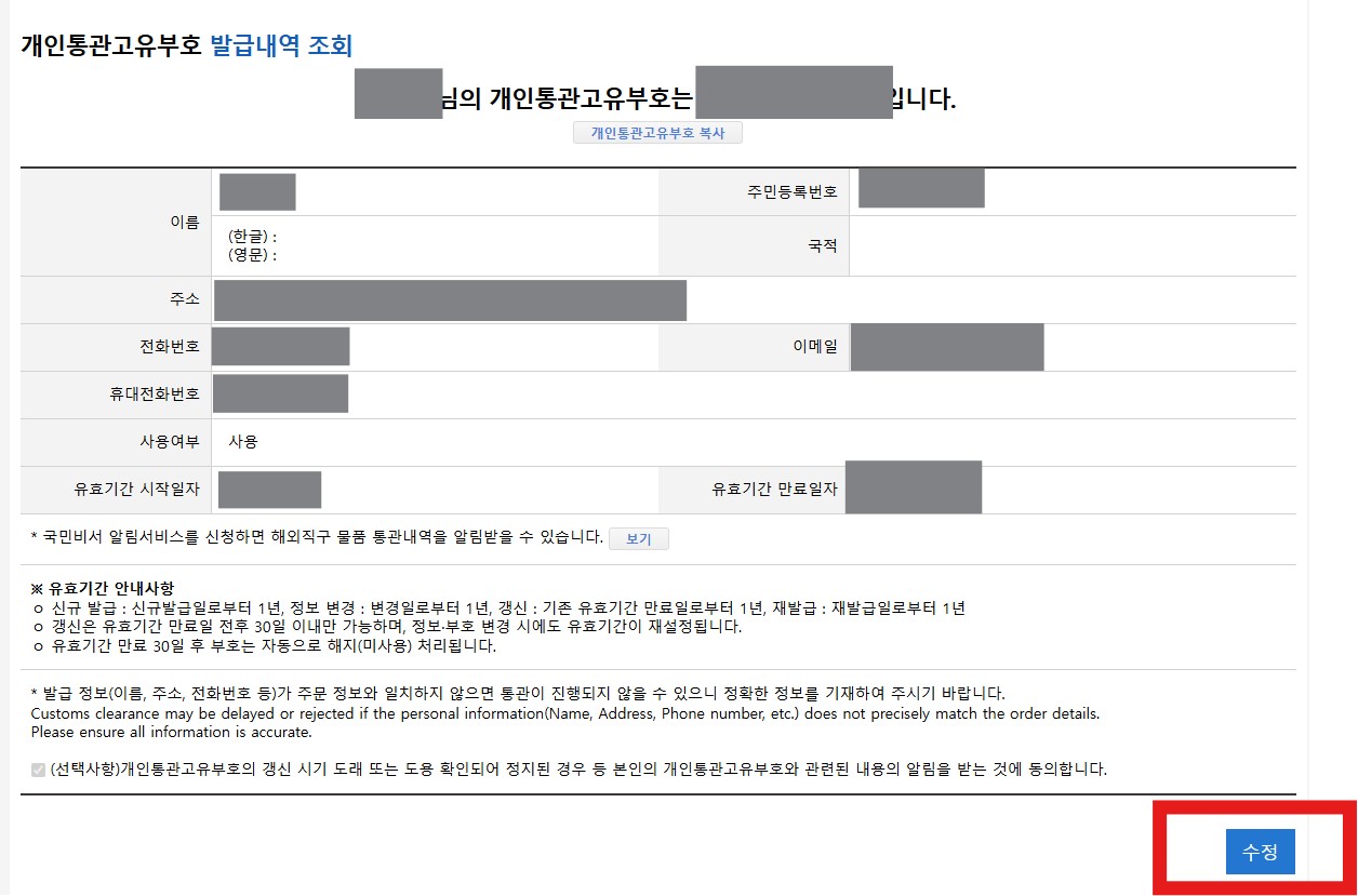 1분 컷! 개인통관고유부호 재발급 초간단 방법