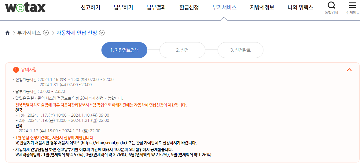 연세액이 10만 원 미만의 차량은 1월과 3월에만 연납 신청 가능